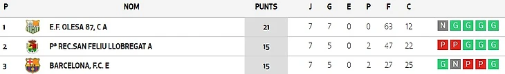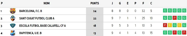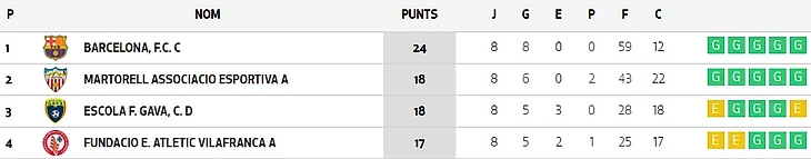 За 2 недели команды барселонской академии провели 31 матч, в которых одержали 29 побед и дважды сыграли вничью. Общая разница мячей - 173-33.