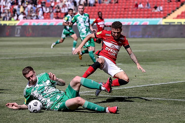 После перерыва «Спартак» стал давить на ворота Шелии с еще большей агрессией. На 47-й минуте Соболев здорово обыгрался с Зобниным в чужой штрафной и едва не поразил нижний угол.