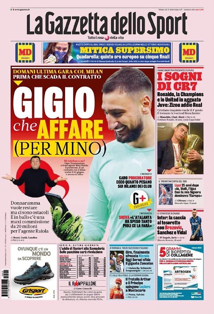 Завтра последняя игра за «Милан», перед истечением контракта. Доннарумма хочет остаться, но есть препятствия. И в обсуждении есть максимальная комиссия на 20 миллионов для агента Райолы.