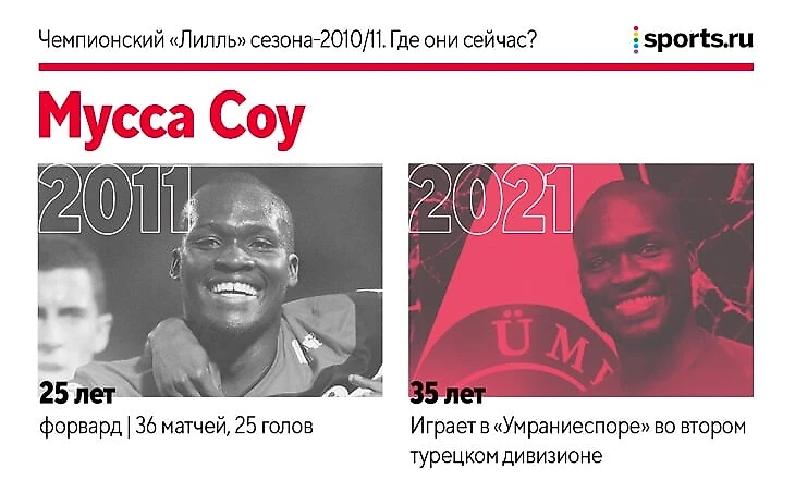 Мусса Соу – главная голевая машина того чемпионата. Сенегалец был не нужен «Ренну» и летом 2010-го пришел в «Лилль» бесплатно. В том же сезоне Лиги 1 Соу забил 25 и забрал звание лучшего бомбардира.
