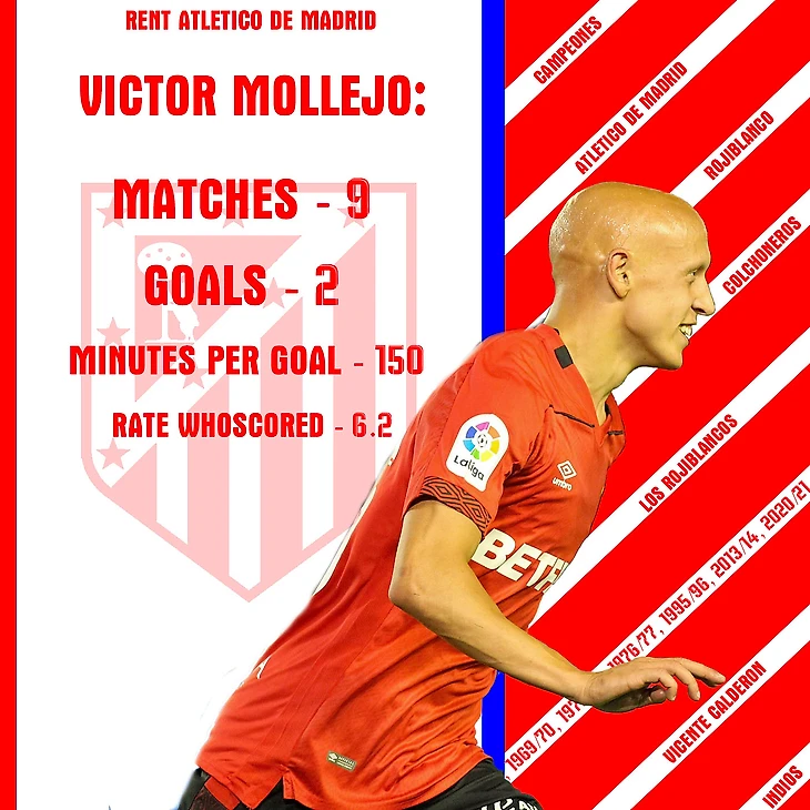 В "Хетафе" же Виктор, можно сказать, и не играл, всего 4 раза за первый круг вышел на замену и не отличился ни разу, во многом в том, что он потерял полгода в "Хетафе" Виктор не виноват, максимальное время, которое он получал в первом круге - 1 тайм, а два раза выходил вообще всего на 1 минуту. Руководство "Атлетико", понимая, что Мольехо никак не развивается в команде Бордаласа решается на то, чтобы прервать аренду и отправить его в другую команду и лигу, в лигу, в которой у него хорошо получалось - в Сегунду, в этот раз в "Мальорку", которая по итогам сезона вернулась в Примеру. Но и там Мольехо мало что успевал сделать на поле, он лишь иногда выходил в старте, за полгода забил 2 мяча. Учитывая то, что Виктору мало доверяли в его командах он показал себя неплохо именно в "Мальорке", ждем на замену Витоло в следующем сезоне.