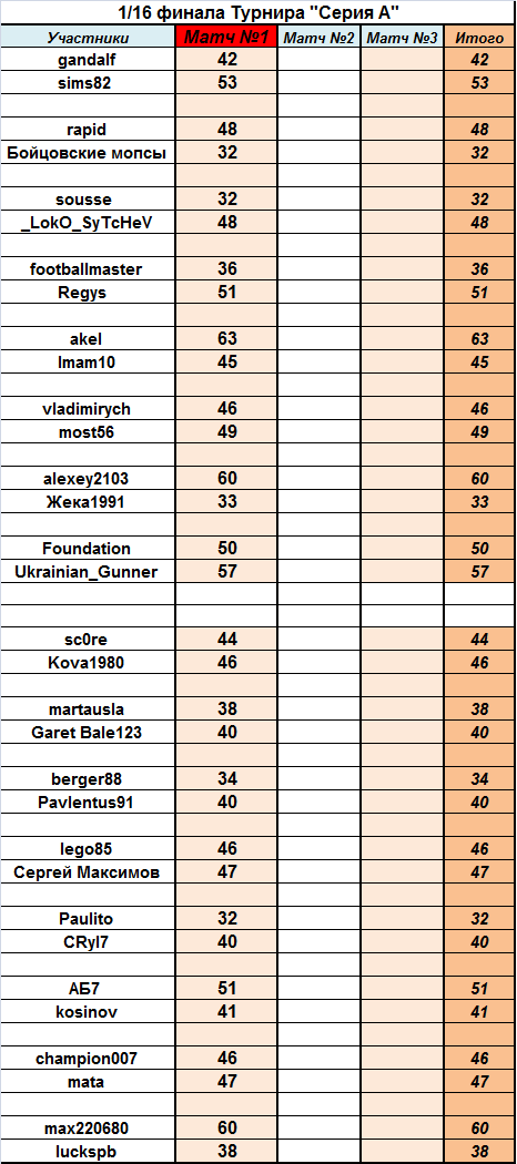 1/16 финала H2H Calcio Fantasy. Первые матчи