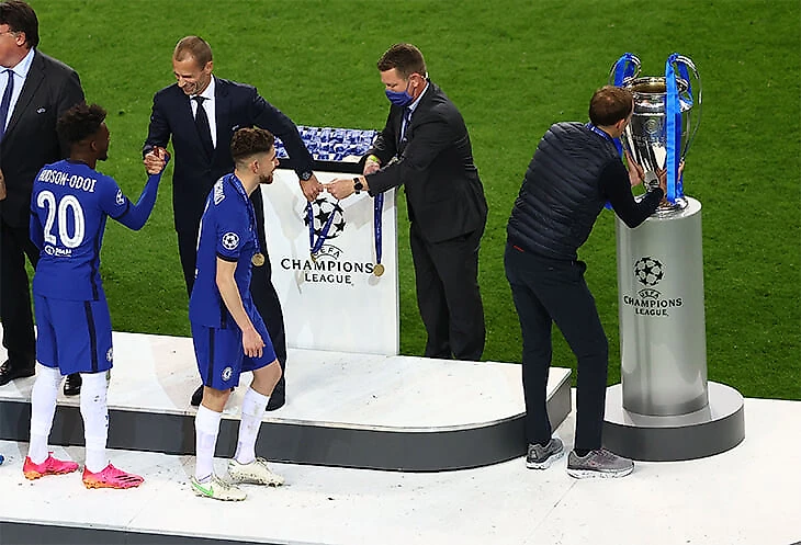 Заслуженная медаль и тот самый кубок. В прошлом году с «ПСЖ» Тухель буквально прошел мимо трофея. Теперь – можно поцеловать награду.