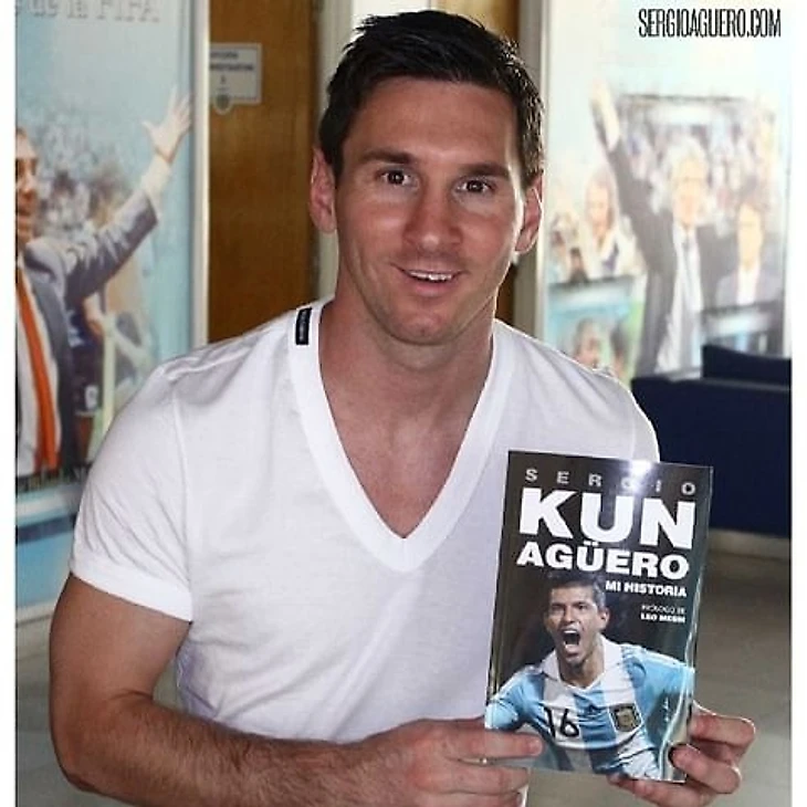 А на следующей фотографии Месси с биографией Агуэро. Для этой книжки Лео рассказал, как еще мальчиком приехал домой в Росарио на каникулы и включил футбол. И увидел, как в составе «Индепендьенте» на поле вышел почти что его ровесник – имени Месси тогда не запомнил, но уже установили, что это был 16-летний Серхио Агуэро.
