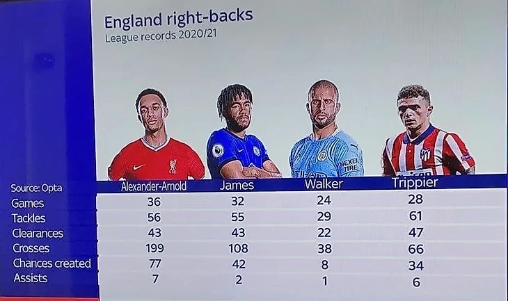 Сравнение Трента с другими английскими правыми защитниками доказывает, что Саутгейт совершил ошибку