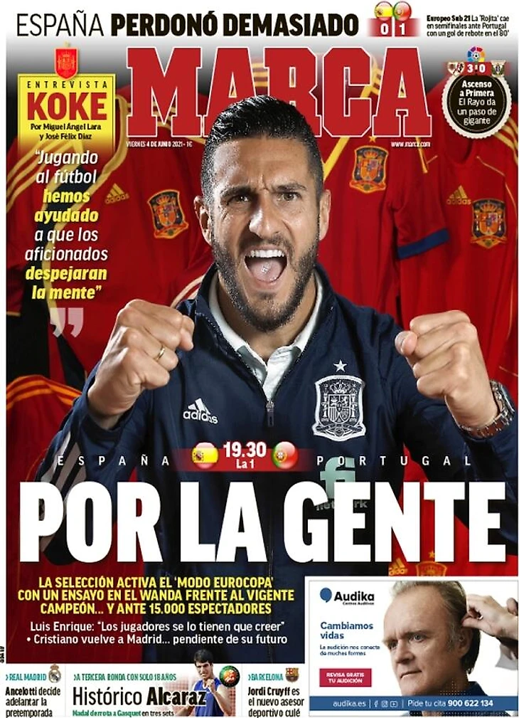 «Marca» с Коке на обложке, анонсирует грядущий товарищеский матч Испании против Португалии: