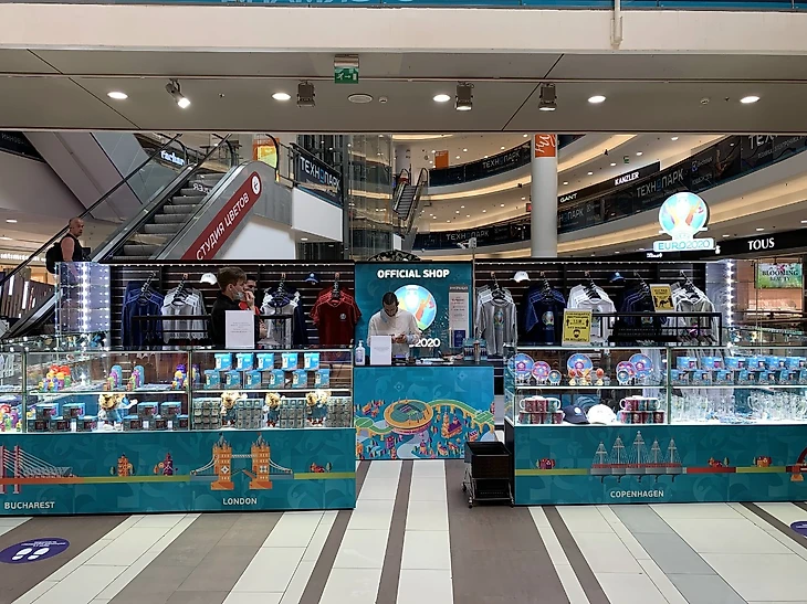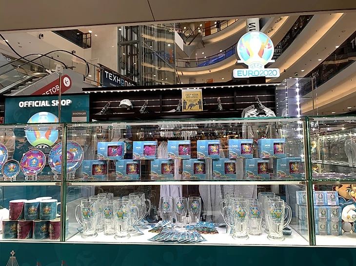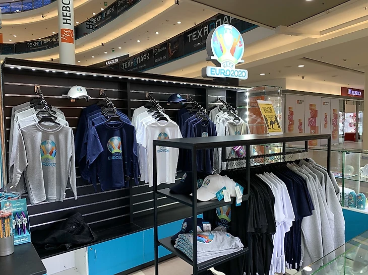 В преддверии Чемпионата Европы по футболу на первом этаже торгового комплекса «Невский Центр» открылся первый в Санкт-Петербурге официальный магазин Чемпионата Европы по футболу UEFA EURO 2020.