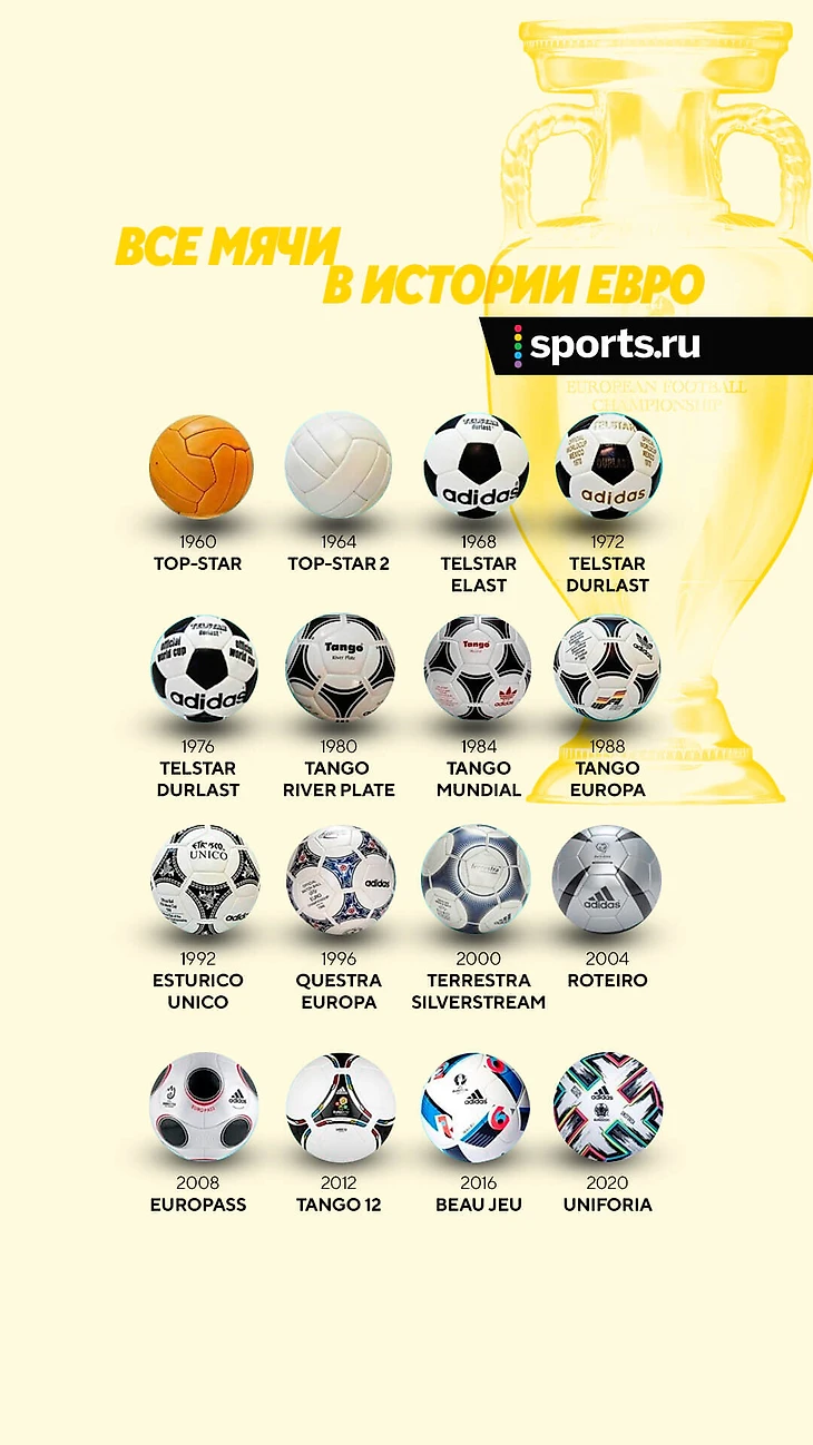 В 1984-м на Tango впервые появилась надпись, посвященная Евро. Правда, только по ней можно было отличить мяч от того, которым играли на ЧМ.