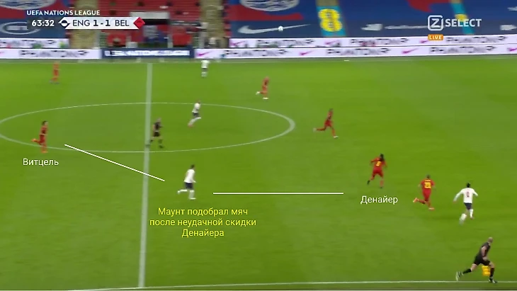Победный гол Англия забила после удачного подбора, снова создав себе условия: за спинами Витцеля и Тилеманса было много пространства, Маунт забрал мяч и разогнал голевую атаку.