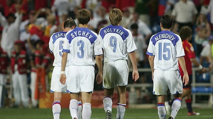 На Евро-2004 России снова досталась сложная группа с Португалией, Испанией и Грецией. Греков обыграть получилось (2:1), но поражения в других матчах снова оставили россиян за бортом плей-офф. И опять два представителя российской группы дошли до финала, где Греция сенсационно обыграла хозяев турнира Португалию.