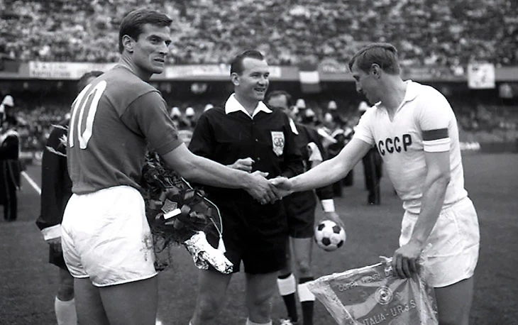На Евро-1964 сборная СССР поехала в статусе действующего чемпиона Европы. В финале пришлось играть с испанцами – хозяевами турнира. До 84-й минут счет держался 1:1, но затем Марселино принес трофей испанцам.
