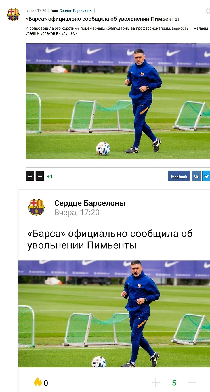 Видимо, мое аргументированное возмущение подлостью Лапорты и Ко в отношении действительно заслуженной Легенды «Барсы» Пимьенты вошло в диссонанс с рафинированными построенными на фейках записями в официальном спортсовом блоге FC Barcelona. Записями с «правильными» комментариями.