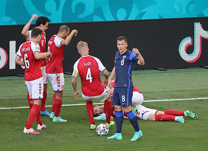 Когда Эриксена привели в сознание, врачи и футболисты сборной Дании организовали завесу ради того, чтобы никто не мог крупным планом рассматривать Эриксена в такой момент. Они донесли тканевые стены (и финский флаг) прямо до входа в подтрибунку.