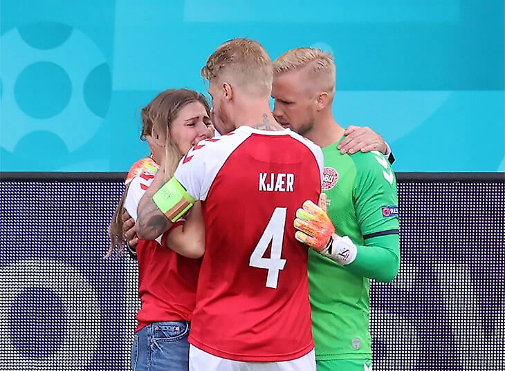 Когда к полю вышла жена полузащитника «Интера» Сабрина Квист Йенсен, Шмейхель и Кьер подбежали ее утешить и успокоить. Потом по очереди несли вахту: один с Сабриной, другой смотрит за действиями врачей. Потом меняются.