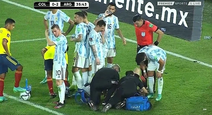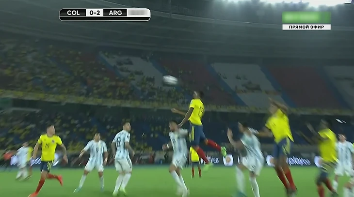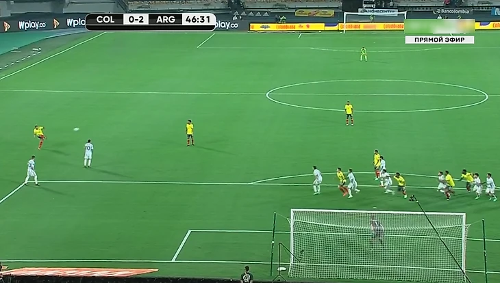 После второго гола Аргентина чуть отошла назад, а Колумбия усилила давление, впрочем, не создавая по настоящему опасных моментов с игры. Ближе к концу тайма Йерри Мина совершает фол в атаке, врезаясь в Мартинеса и наш голкипер оказывается на лежащим на траве... А вот после замедленного повтора стало реально страшно - Эмилиано, падая с высоты около метра, хорошо приложился головой о газон.