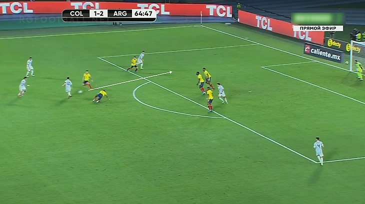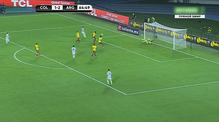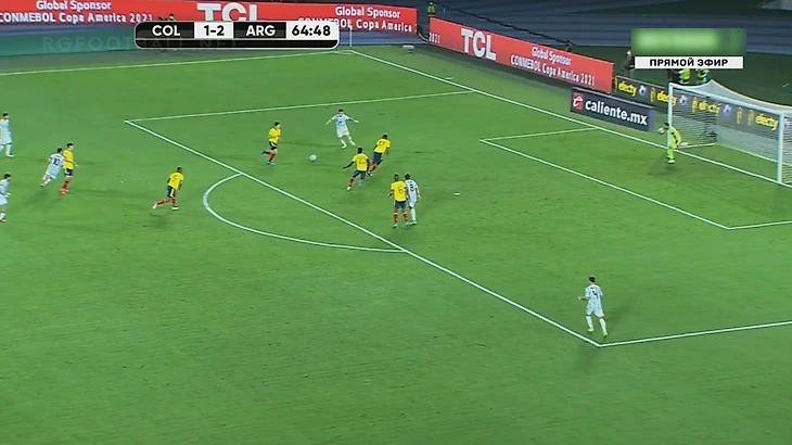 Аргентина ожидаемо начала игру первым номером, а Колумбия вынуждена была работать без мяча. Эмилиано Мартинес уверенно играл на выходах, вселяя уверенность в защитников. Хорошо заметен был Родриго Де Поль (буду теперь так его называть, раз уж так его называют сами аргентинцы). Да, полузащита Колумбии - это не Франция, Бразилия или Германия, но всё же. И уже на 5-й минуте Родриго выполняет подачу со штрафного, отправляя мяч на линию вратарской, откуда неотразимо головой пробивает Кристиан Ромеро, выводя Альбиселесту вперёд!