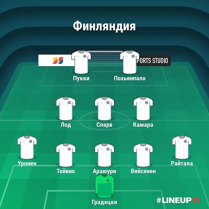 Первый свой матч Финляндия играла по четкой схеме 5-3-2. Двое всегда остаются впереди – Пукки ("Норвич", 41 игра, 26 голов за сезон) и Похьянпало ("Унион Берлин", 20 игр, 6 голов за сезоне). Остальные 8 игроков обороняются. Затем идет вынос, один из нападающих цепляется за мяч и пытается сохранить его до тех пор, пока команда не поднимется, чтобы начать позиционную атаку.