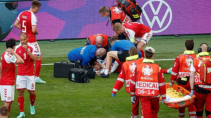 Жизнь Кристиана Эриксена спасли благодаря мгновенной реакции партнеров, которые быстро позвали врачей. Медики сборной начали делать непрямой массаж сердца, вскоре рядом появилась реанимационная бригада.