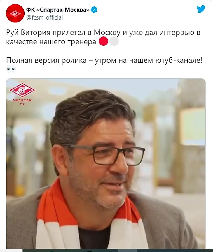 Руй Витория сменил на посту главного тренера «Спартака» немецкого специалиста Доменико Тедеско, покинувшего команду по окончании прошлого сезона. Красно-белые объявили о заключении двухлетнего контракта с португальцем 24 мая.