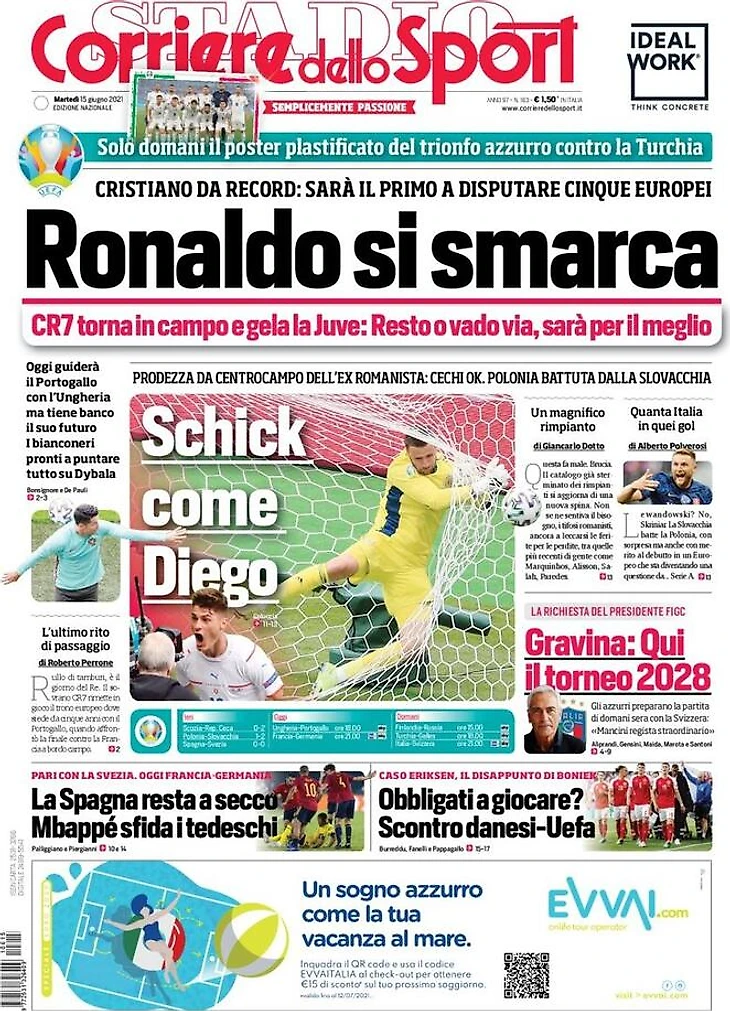 Обзор футбольных европейских газет, а так же наиболее интересные трансферы на утро 15/06/21.