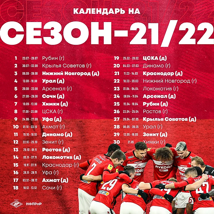 Примем «Рубин» на столетие и «Зенит» в 29-м туре. Календарь «Спартака» на сезон