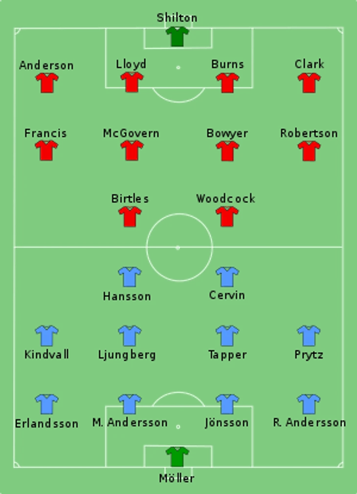 В финалльном матче в Мюнхене Ноттингему противостоял шведский Мальмё, выбивший в полуфинале Аустрию (0:0, 1:0). Единственный гол того матча забил английский нападающий Тревор Фрэнсис (он единственный из Ноттингема попал в десятку лучших в голосовании на Золотой мяч), и Ноттингем Форест стал третьим в истории английским клубом, выигравшим КЕЧ. Через год им удалось повторить свой триумф, но об этом поговорим в другой раз.