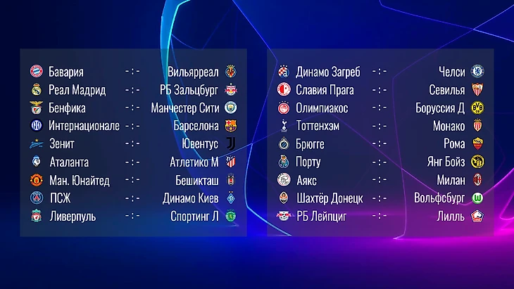 Хозяева матчей были определены жребием, с соблюдением пункта о клубах из одного города. Также по рейтингу Зенит должен был в первом туре играть с Атлетико, но его поменяли местами с Аталантой, чтобы избежать матча Аталанта - Интер.