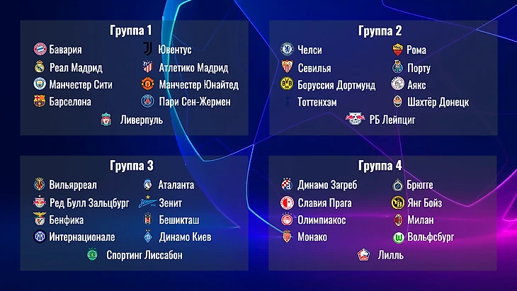 В данном примере клубы просто отсортированы по рейтингу и разбиты по 9 команд. Но вполне возможно, что УЕФА автоматически будет определять в первую группу действующих обладателей Лиги Чемпионов / Европы, а также победителей национальных чемпионатов. В таком случае места ПСЖ, Ливерпуля, Ювентуса, Реала, Барселоны и Манчестера Юнайтед заняли бы Челси, Вильярреал, Интер, Лилль, Спортинг и Зенит.