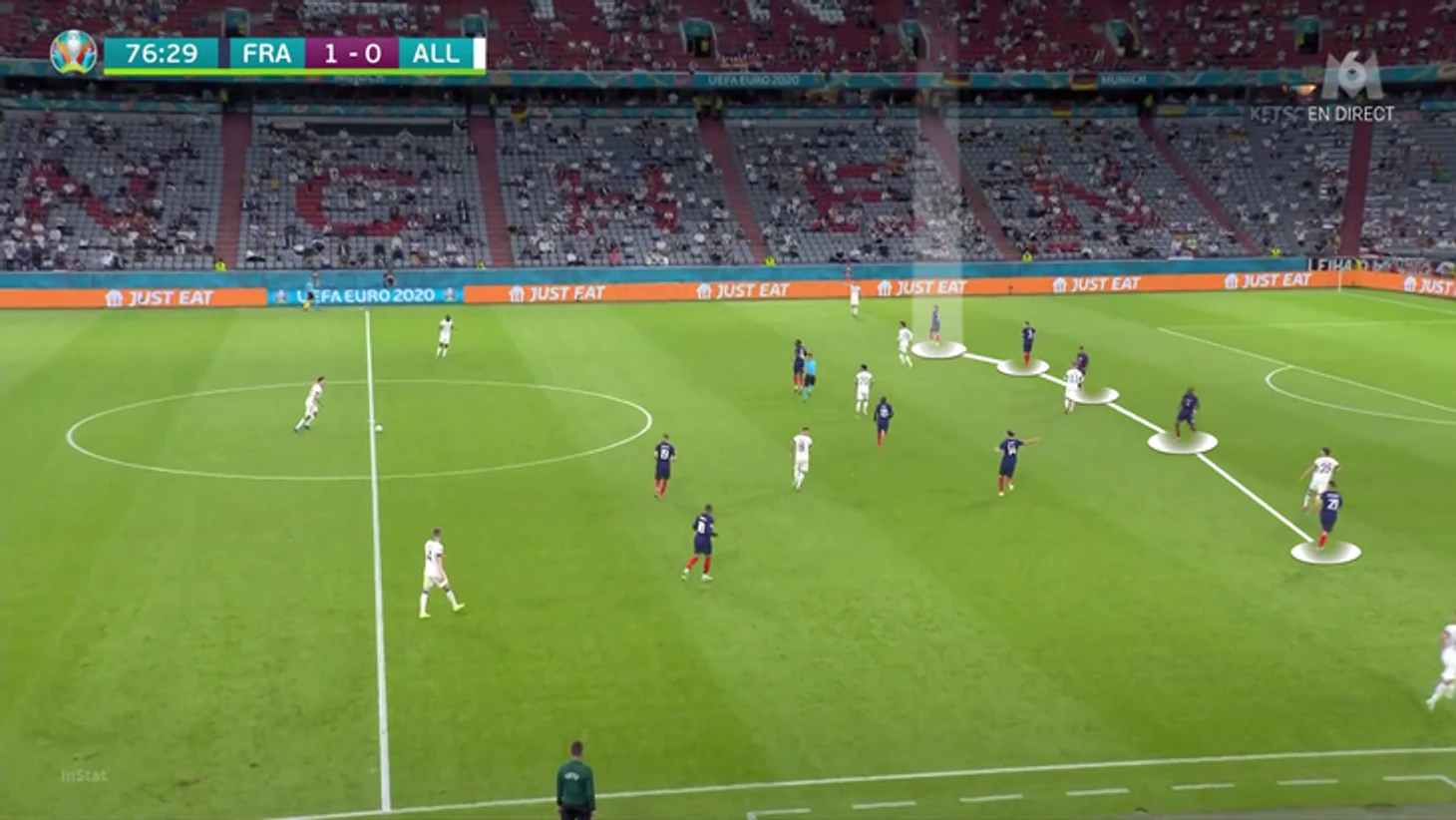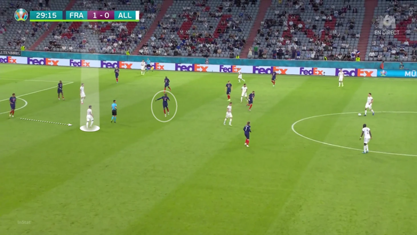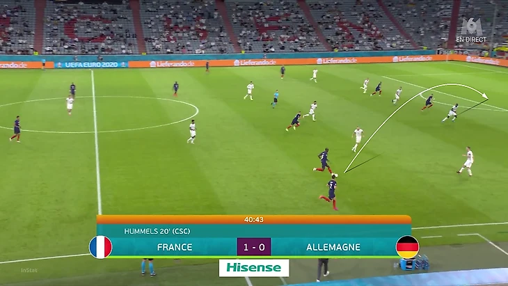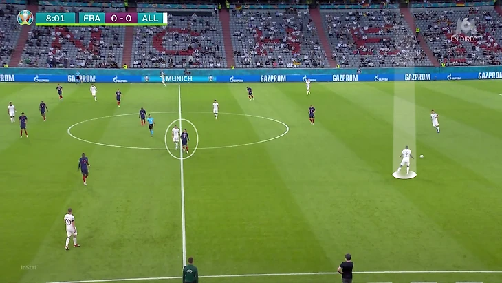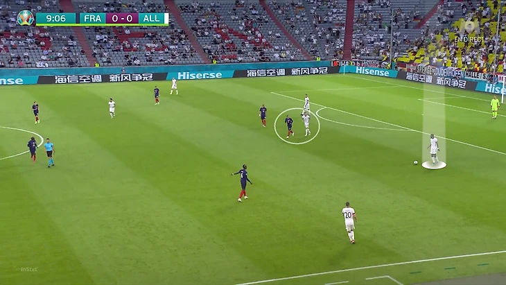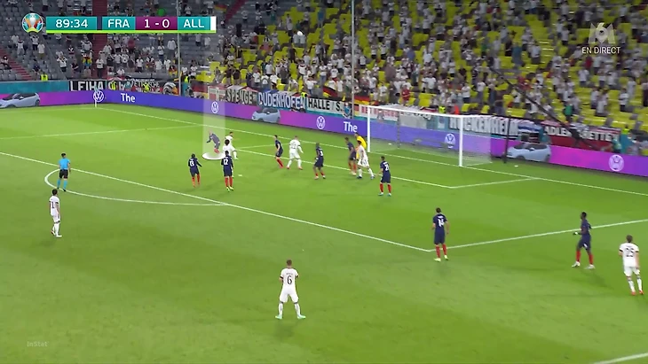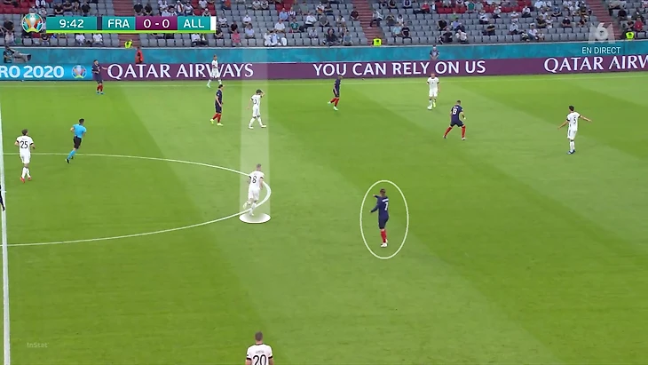 По итогам первого тура Евро у Франции худший результат по прессинг-действиям. В теории у Франции были условия, чтобы сыграть рискованнее без мяча. У Германии вышла тройка центральных защитников, у французов – тройка нападающих. В случае высокого прессинга у команды Лева не было бы лишнего игрока в первой стадии. Вместо этого Дешам выбрал более осторожный, но при этом и более оригинальный вариант (в этом чуть ли не весь Дидье!). Гости осознанно опекали Тони Крооса – пожалуй, самого важного в розыгрыше у Германии.