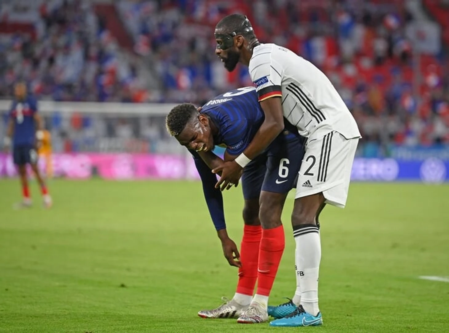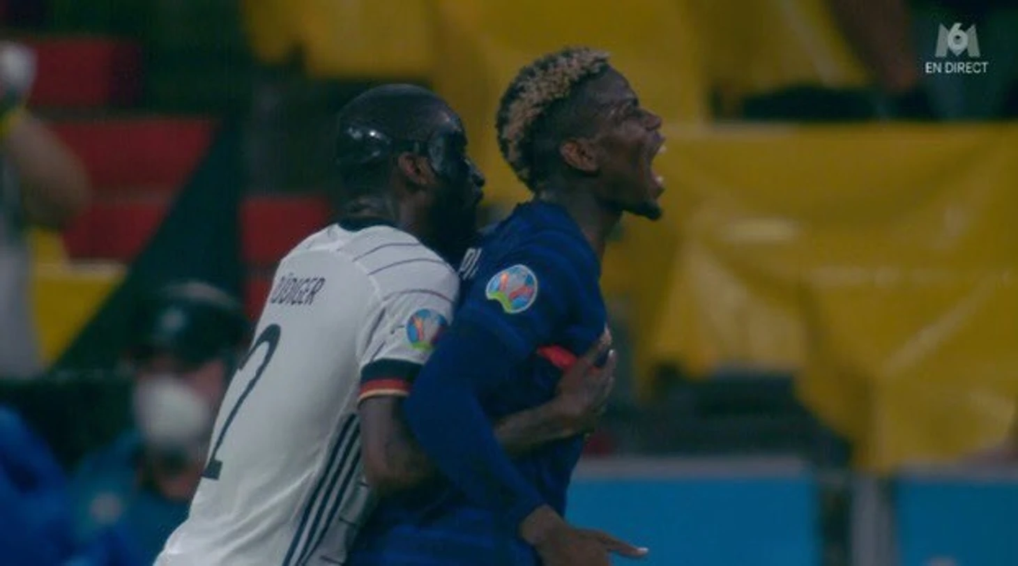 Пока болельщики «МЮ» недоумевали, почему Погба так не играет за клуб, сборная Германии пыталась остановить француза. Антонио Рюдигер, например, не придумал ничего лучше, как просто прикусить Поля за плечо в конце первого тайма.