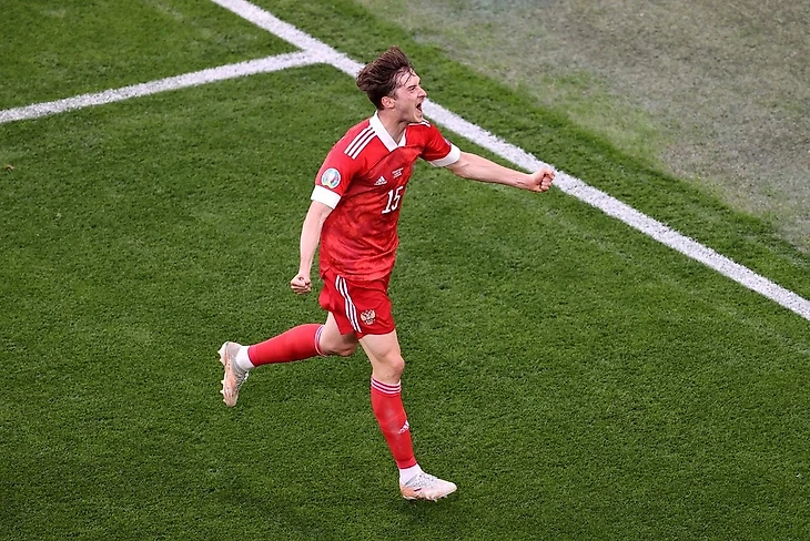 В конце первого тайма зрители увидели гол: Леша Миранчук разыгрывая мяч перед штрафной, вошел в штрафную и собрав на себя троих финнов красиво пробил в дальнюю девятку. Вот и случился первый гол сборной России на этом Евро.