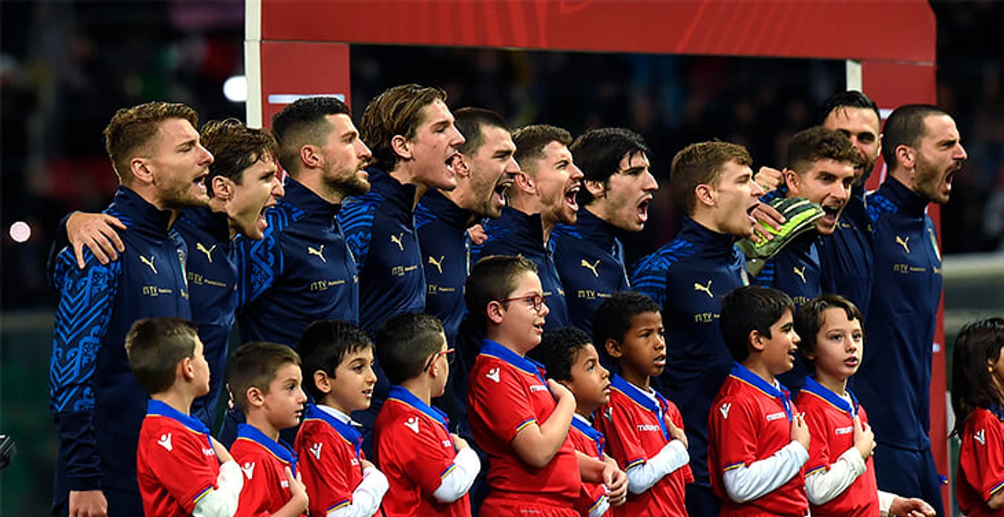 Пару лет назад нас так впечатлила вот эта фотография с Риккардо Орсолини, Федерико Кьезой и Патриком Кутроне с молодежного Евро, что мы рассказывали о проникновении гимна в футбольную культуру Италии – оказывается, раньше мало кто вообще знал слова.