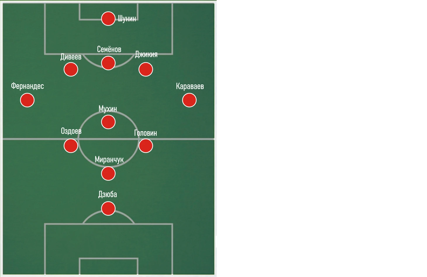 Миранчук свободно получает мяч. Оздоев выходит на такую позицию, из которой не то что я, тут даже Вернер забил бы. Но нет! Не так прост Оздоев. По воротам он не попал.