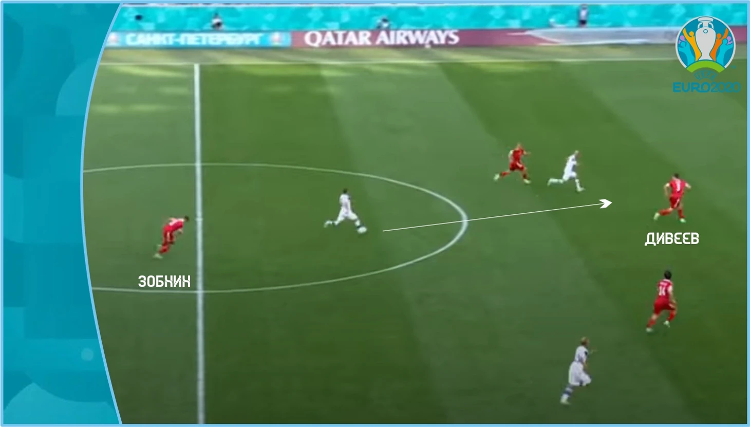 Но финны могли и отквитаться, ведь у них есть Зобнин. Они не знали, но он у них есть - Лод просто забрал мяч у футболиста, который в России славится невероятной работоспособностью и бойцовскими качествами, а потом убежал так, что суперполузащитнику "Спартака" надо было вызывать такси. Передачу в атаку прервал Дивеев. На кадре не передать, но сделано это было так, что без слёз не посмотришь. Вместо того, чтобы перехватывать или на крайняк выбивать мяч, Дивеев чуть не потерял позицию и выбил только в подкате.