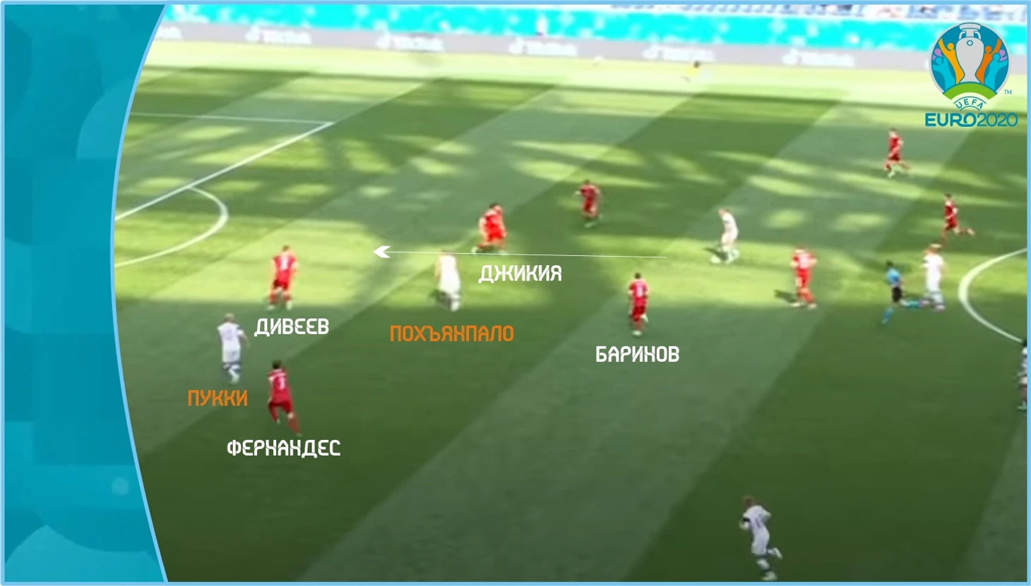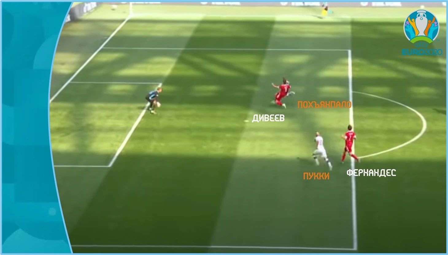 Момент сборной Финляндии. Нападающие врываются в свободные зоны, Баринов выдвинулся в полузащиту и не задвинулся обратно. Тут Дивеев взял упреждение солидное, а Фернандес рассчитывает, что Пукки (на минутку один из лучших нападающих Чемпиошипа) не вырвется на простор забивать голы в таком маловажном матче за последний шанс выйти из группы.