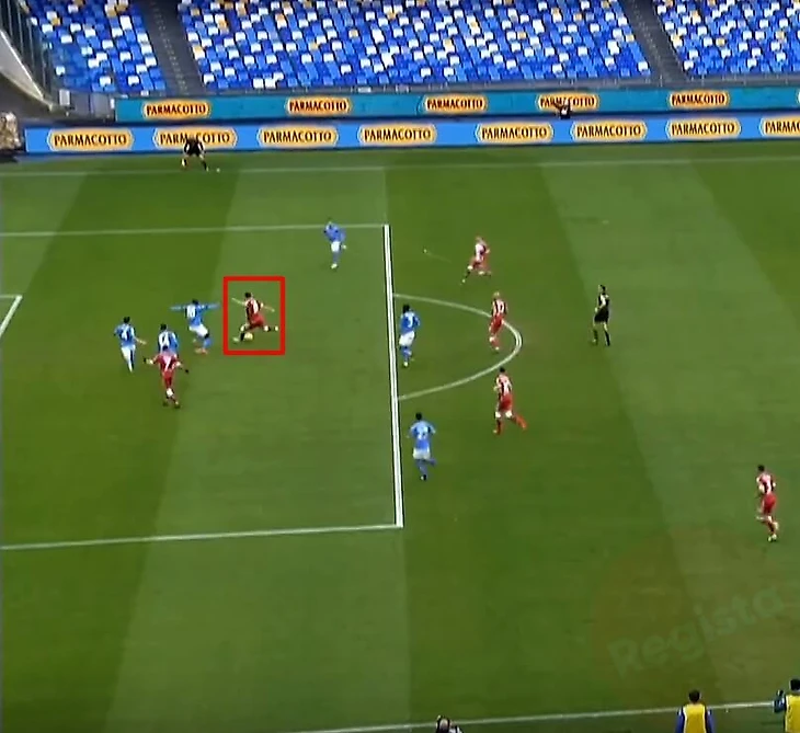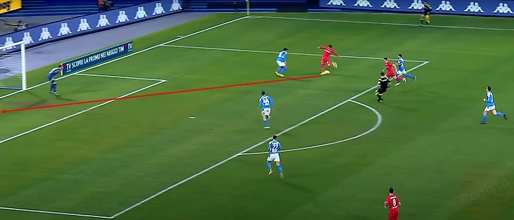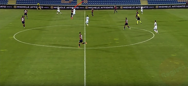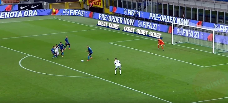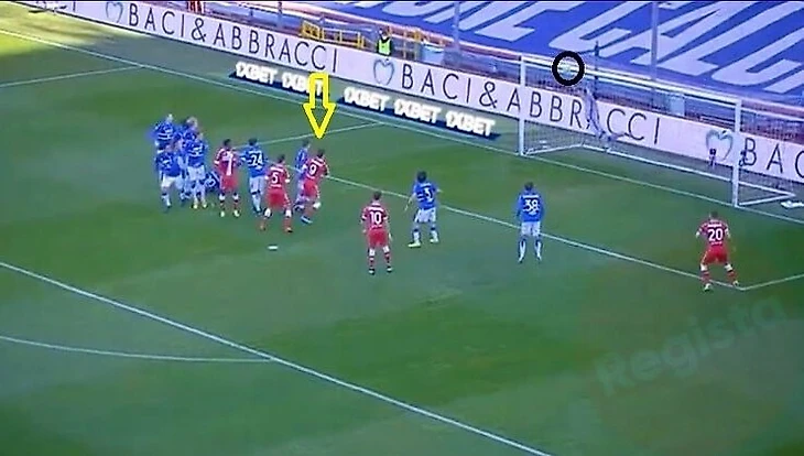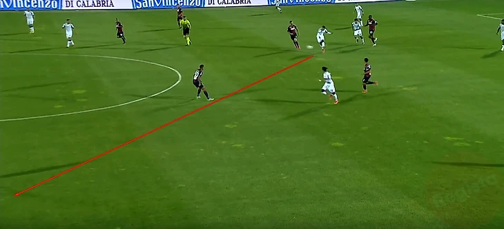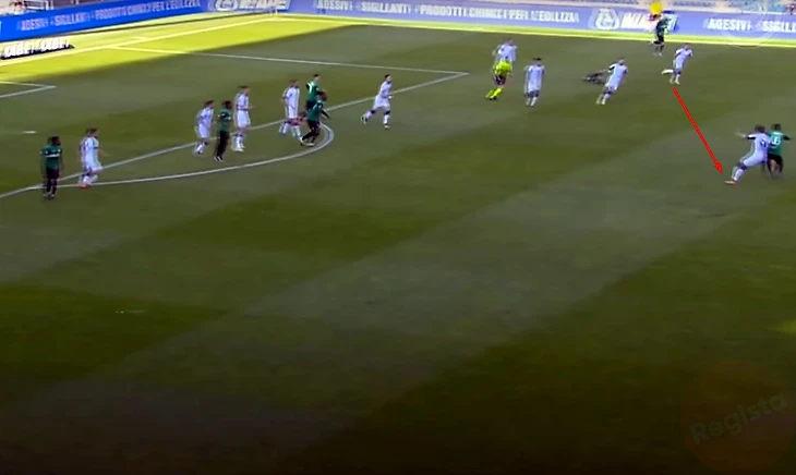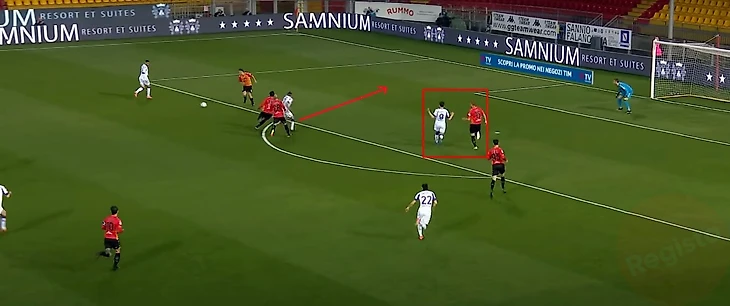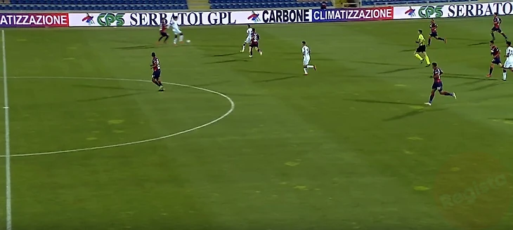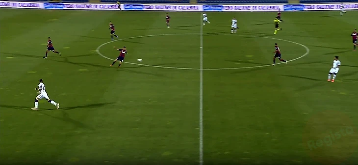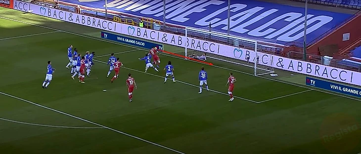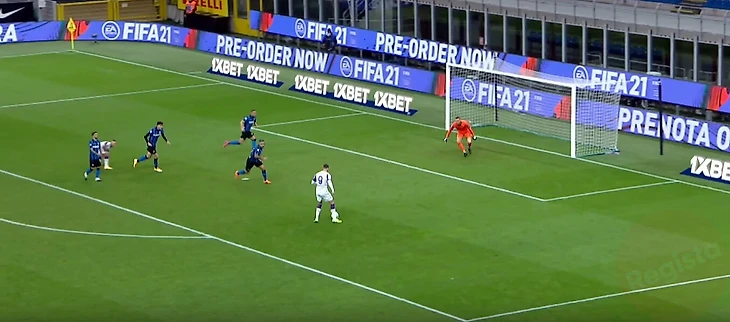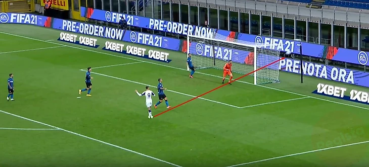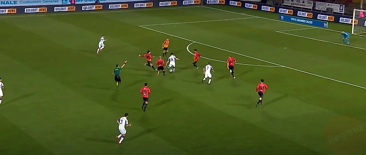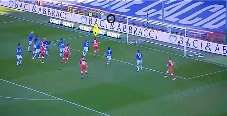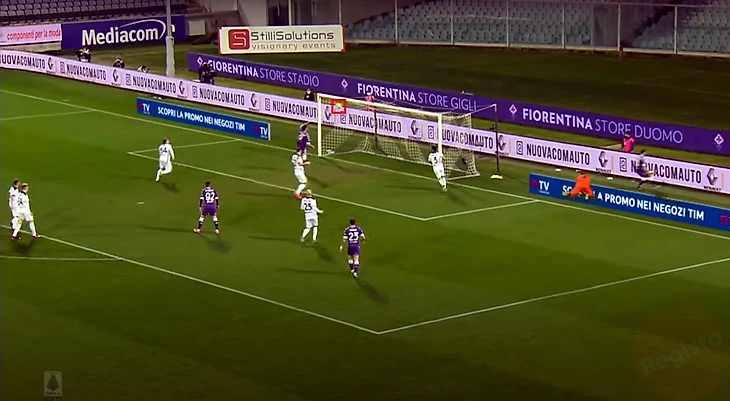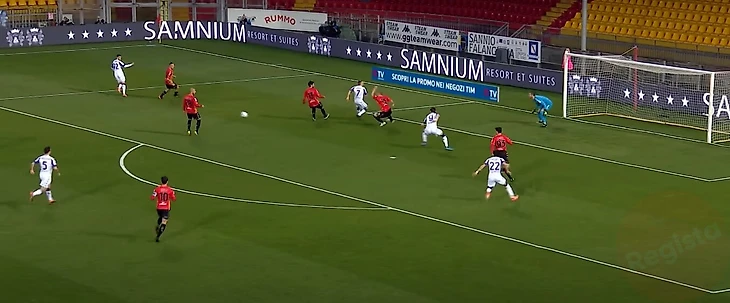 Гостевой матч против «Беневенто» в сезоне 2020/21. Одна из любимых зон Влаховича для удара из-за пределов штрафной ещё со времён игр за юношеские команды. Мяч попадёт точно в левый для игрока дальний угол