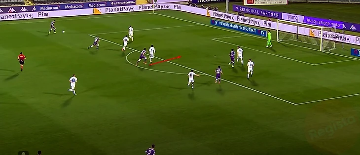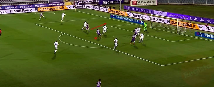 «Фиорентина» пользовалась способностью серба придержать мяч и при вбросе мяча из боковой.
