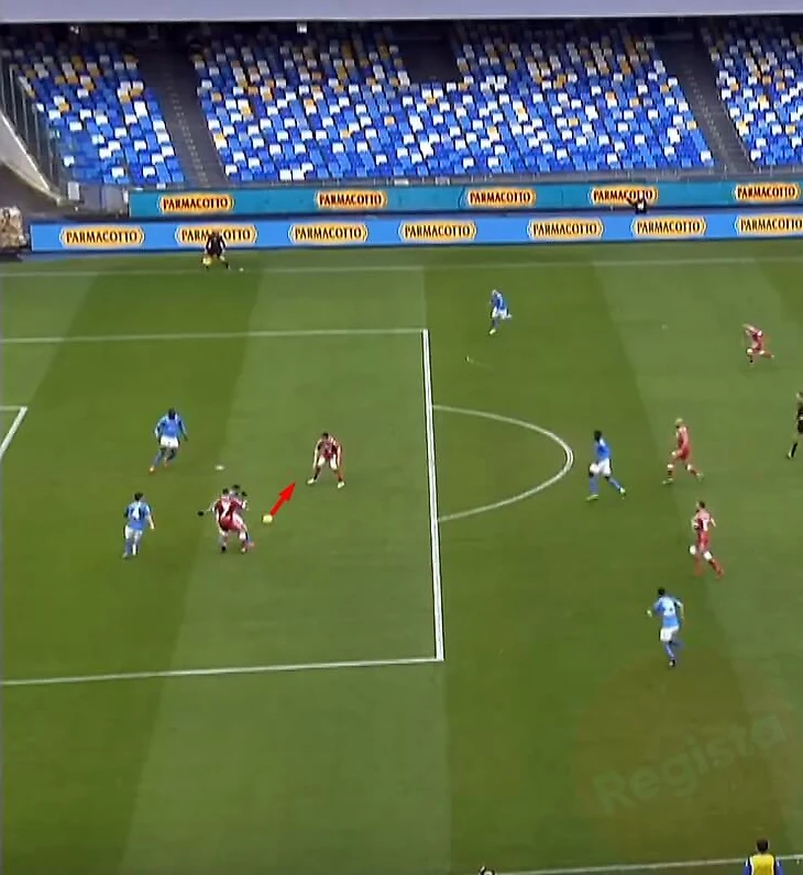 Аналогичный эпизод из матча с «Удинезе»: Влаховича очень трудно сдвинуть с места, форвард уверенно пользуется габаритами при игре в корпус.