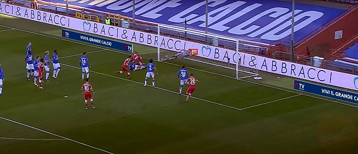 Гол «Сампдории»: Влахович просчитал траекторию отскока и в итоге оказался первым на мяче при добивании.