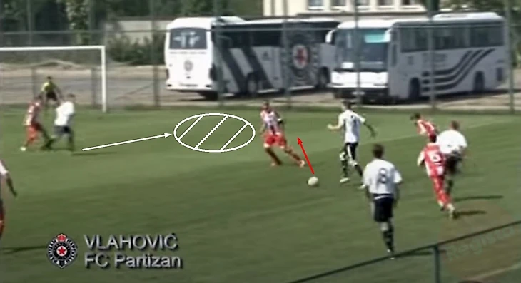 Впрочем, заметно и чрезмерное использование игроком левой ноги: Влахович часто оказывается справа, чтобы сместиться после приёма в центральные зоны и контролировать мяч более сильной ногой. При получении же мяча под правую, особенно после прострела с левого фланга, Влахович начинает либо подбирать ногу, до последнего стремясь избежать удара правой, либо и вовсе останавливает мяч и перекладывает его под рабочую.