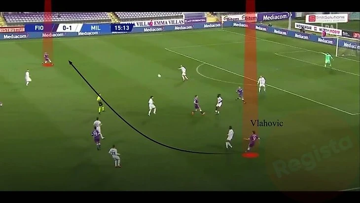 Перевести мяч с правого фланга на левый при отсутствии чрезмерного давления со стороны защитника Влахович вполне способен. Этот приём игрок использует как при игре за клуб, так и за сборную.