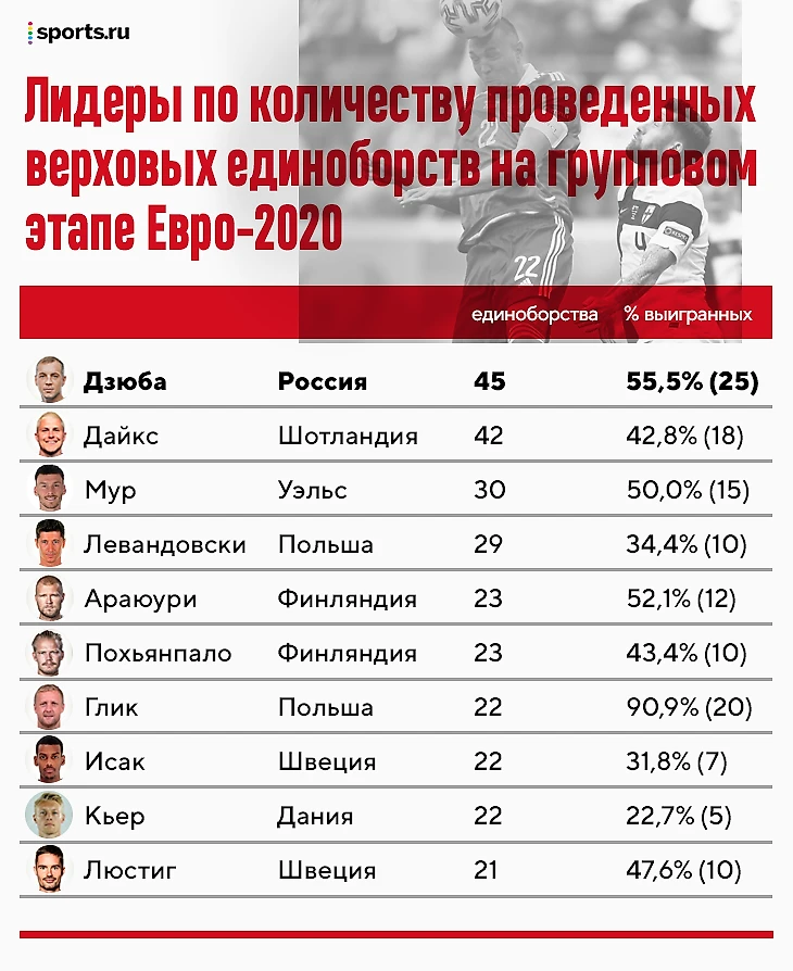 Вы точно слышали, что Дзюба – лидер по количеству проведенных и выигранных верховых единоборств. Все логично, учитывая стиль России.