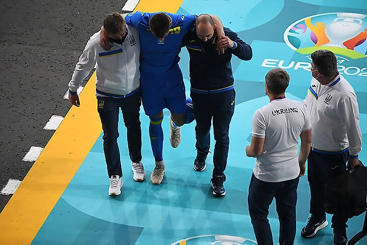 Самый жесткий момент Евро: шипами в колено получил украинец Беседин. Смотреть очень больно