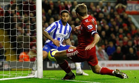 Энди Хантеру повезло минувшим вечером оказаться на «Энфилде»: «Хет-трик забитых в собственные ворота мячей «Брайтона» в игре, в которой худшим моментом оказался выход на поле в компенсированное время обнаженного до гола болельщика средних лет, позволил «Ливерпулю» спокойно забронировать путевку в четвертьфинал Кубка Англии и забыть о последних дискуссиях по поводу Луиса Суареса. Команда Кенни Далглиша в следующее воскресенье впервые за последние 16 лет вернется на «Уэмбли» и очевидно, что ее желание к большему только усиливается».