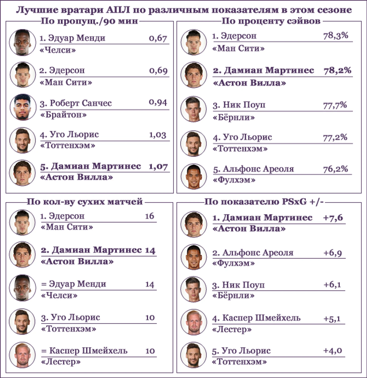 Мартинес с Лено вместе совершили 143 сэйва – это больше всех в лиге. Команда допустила в створ 189 ударов: хуже было лишь у «Ньюкасла» и вылетевшего «Норвича». Самый высокий процент сэйвов тоже был у «Арсенала» - 78,3%.