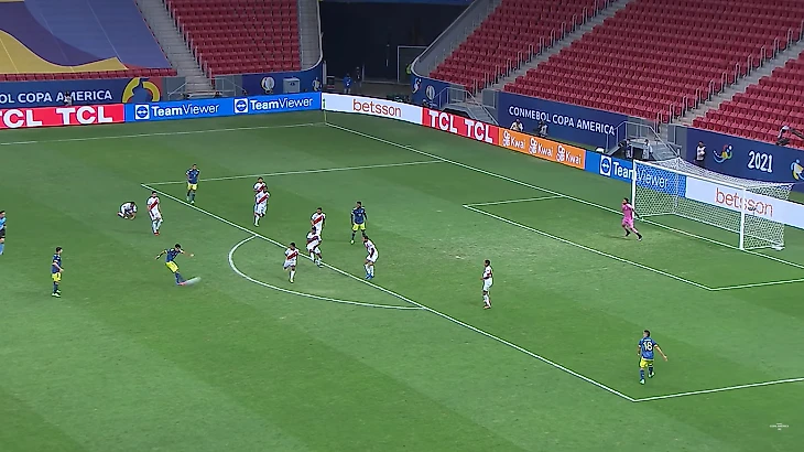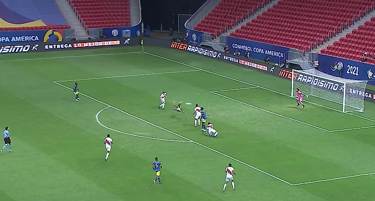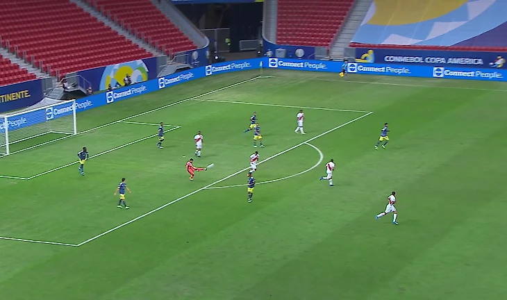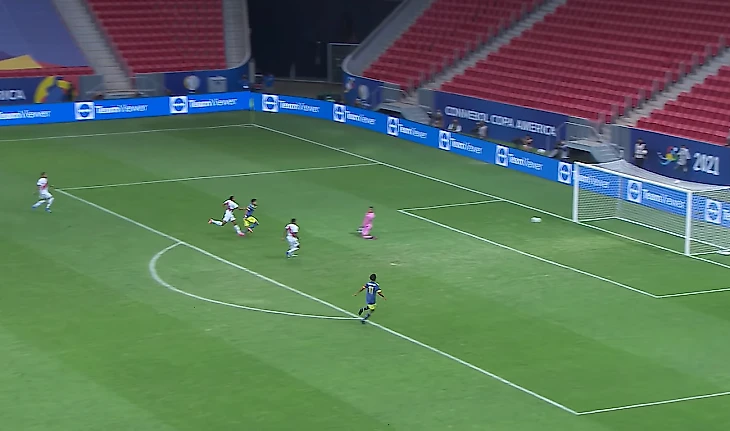 К 50-й минуте команды обменялись голами, а затем за дело взялся 24-летний вингер «Порту» Луис Диас. Сначала он чуть во второй раз за турнир не забил ножницами – вратарь перуанцев успел вовремя сложиться и перевести мяч на угловой.
