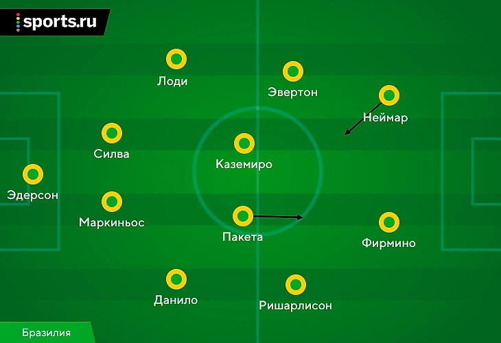 11. Взаимодействие Пакета и Неймара – главный шанс Бразилии на гол. Пакета неоднократно включался в атаку, когда Неймар смещался на фланги и в полуфланги. Он классно чувствовал движение Неймара и своевременно грузил защитников.
