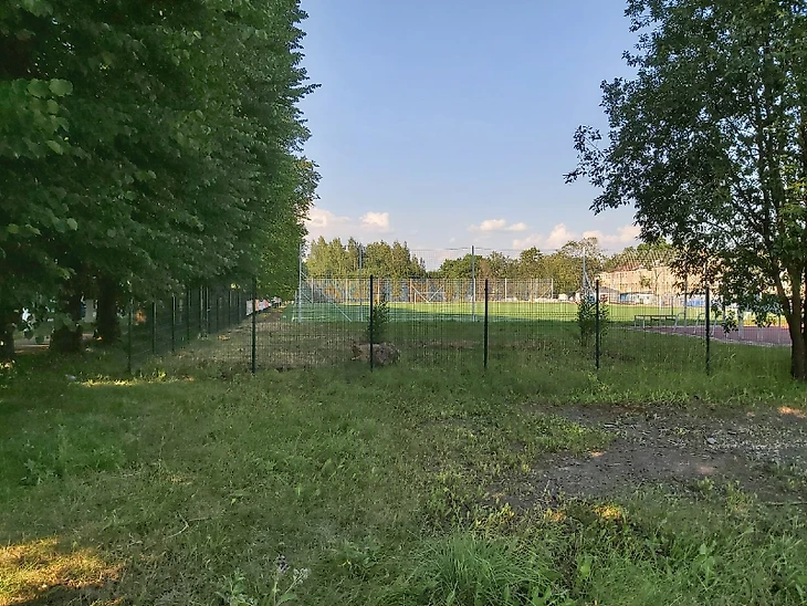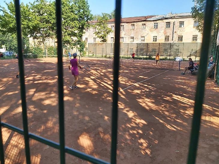 Вообще стадион «Балтийский» не ограничивается одним футбольным полем и трубной на 100 посадочных мест. Так, ближе к парковке, расположились два теннисных корта. Вот и сейчас там проходят напряженные матчи в парном разряде. Играют разумеется любители. А еще у стадиона отдельный домик с командными раздевалками, подобный тому, что есть на стадионе «Красный треугольник» в Санкт-Петербурге.
