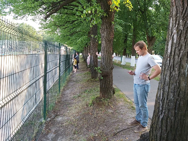 В одном из эпизодов игры мяч перелетел через невысокий забор и оказался на проезжей части, что в непосредственной близости от футбольного поля. Понимая, что нарушаю все возможные правила ПДД, я сбегал за мячом и вернул его подошедшему болбою.
