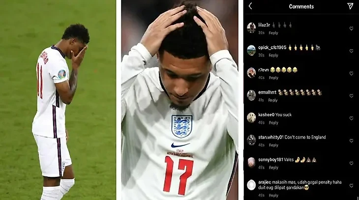 А вот чего вы, возможно, не знаете, так это того, что наши футболисты, Маркус Рэшфорд и Джейдон Санчо вместе с Букайо Сака из «Арсенала», не реализовавшие решающие пенальти, получили из сети волны любви и уважение от некоторых британских фанатов. Увы, волны в виде грязных расистских оскорблений.